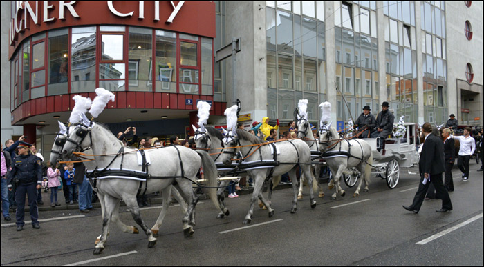 Sechsspännig bei der Hochzeit von Cathy und Richard Lugner am Samstag den 13. September 2014 in Wien