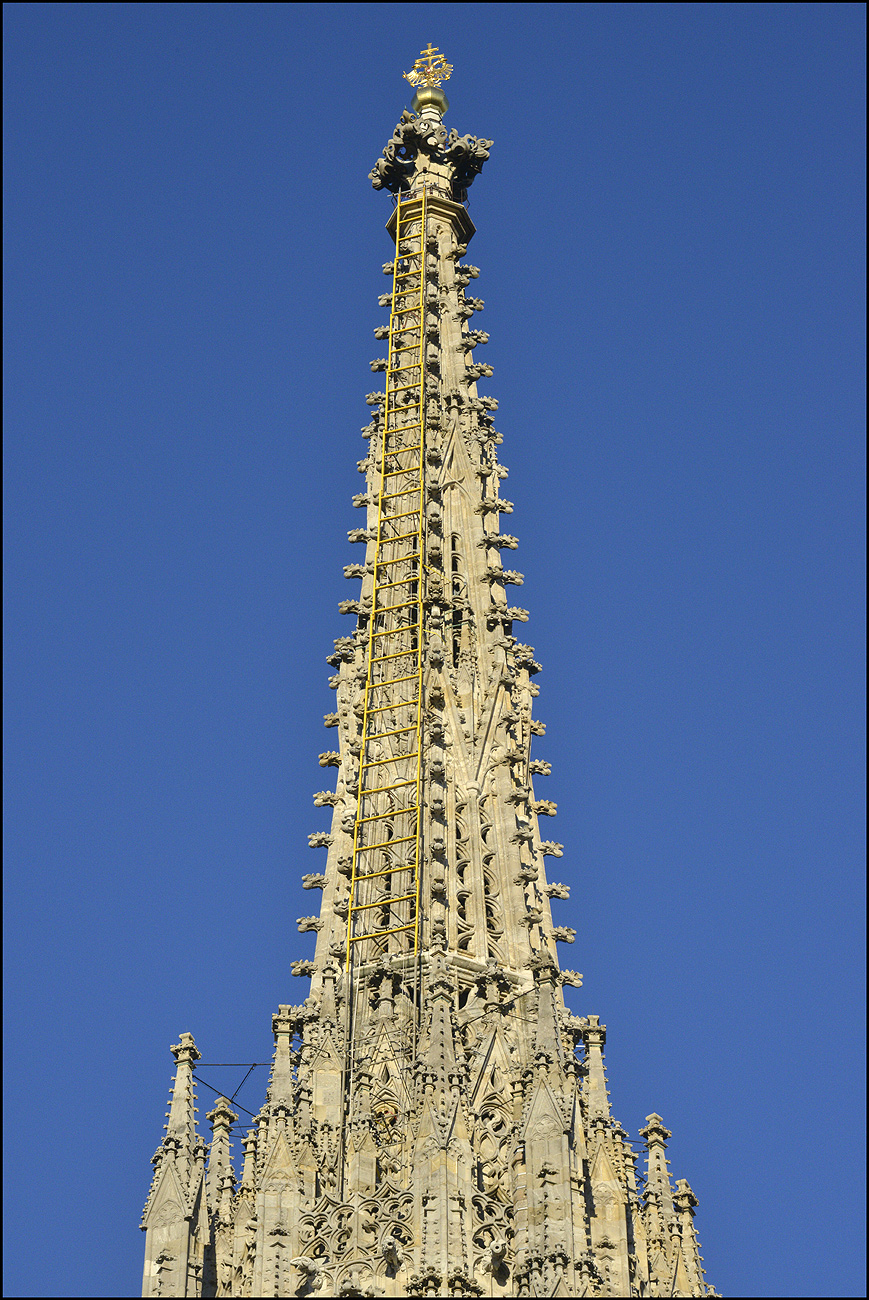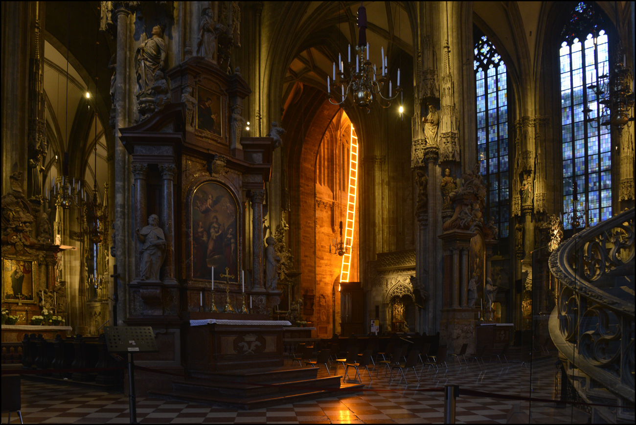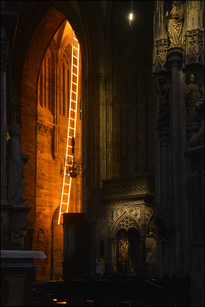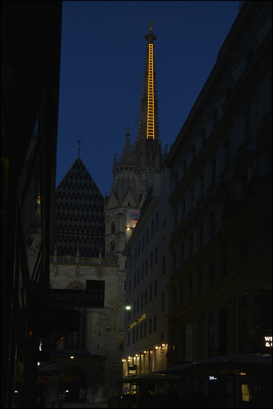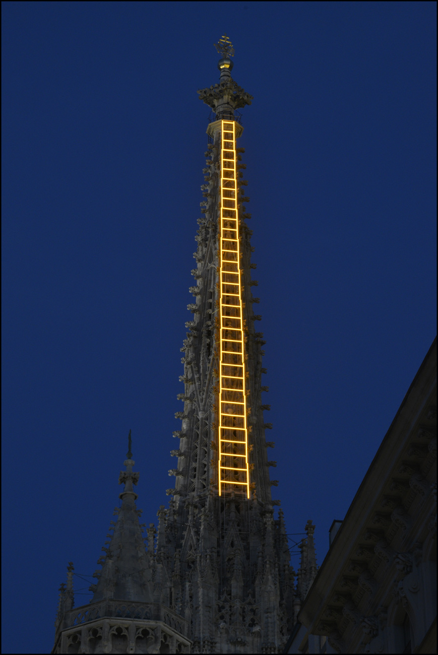Die goldene Himmelsleiter am Stephansturm und in der Taufkapelle am Dienstag den 18. Mai 2021