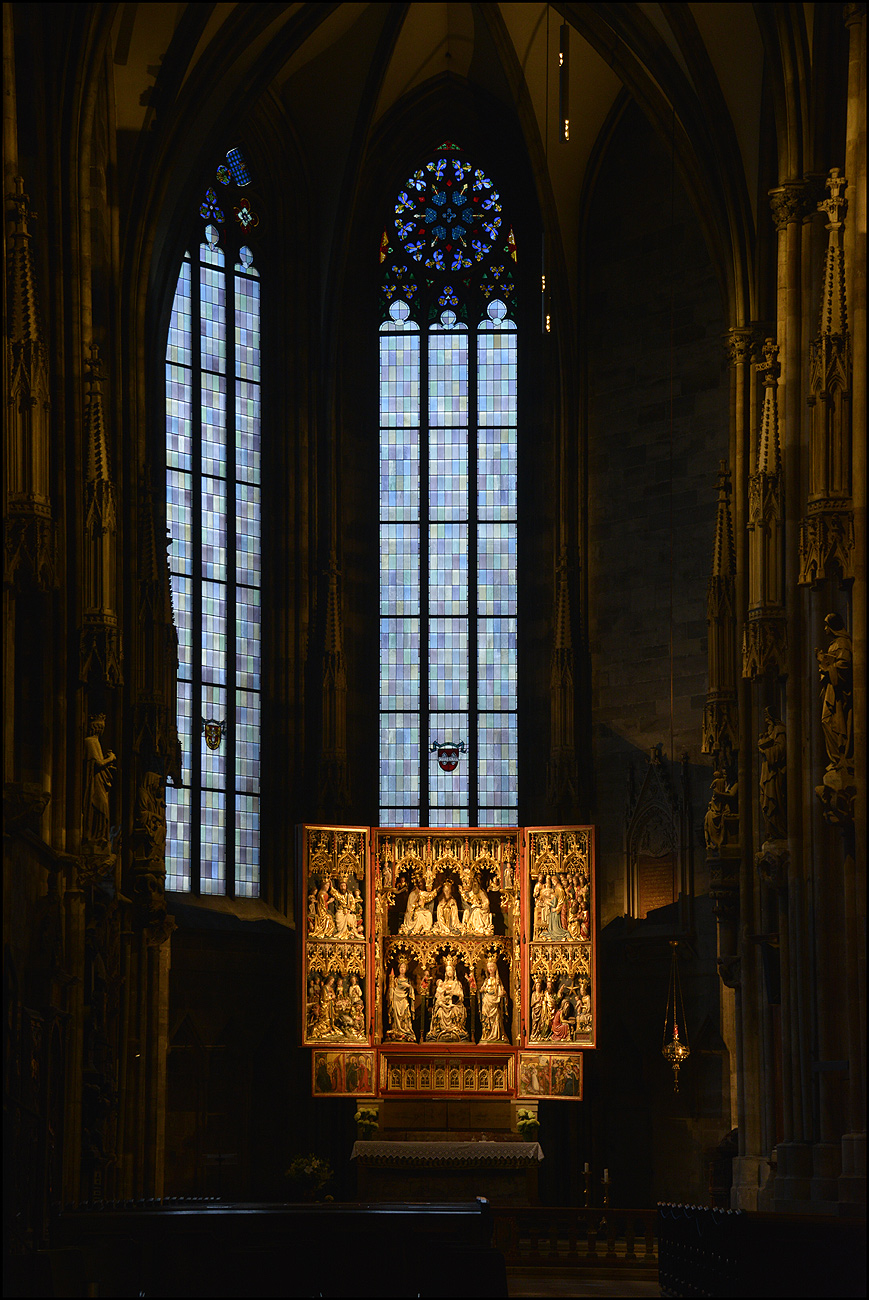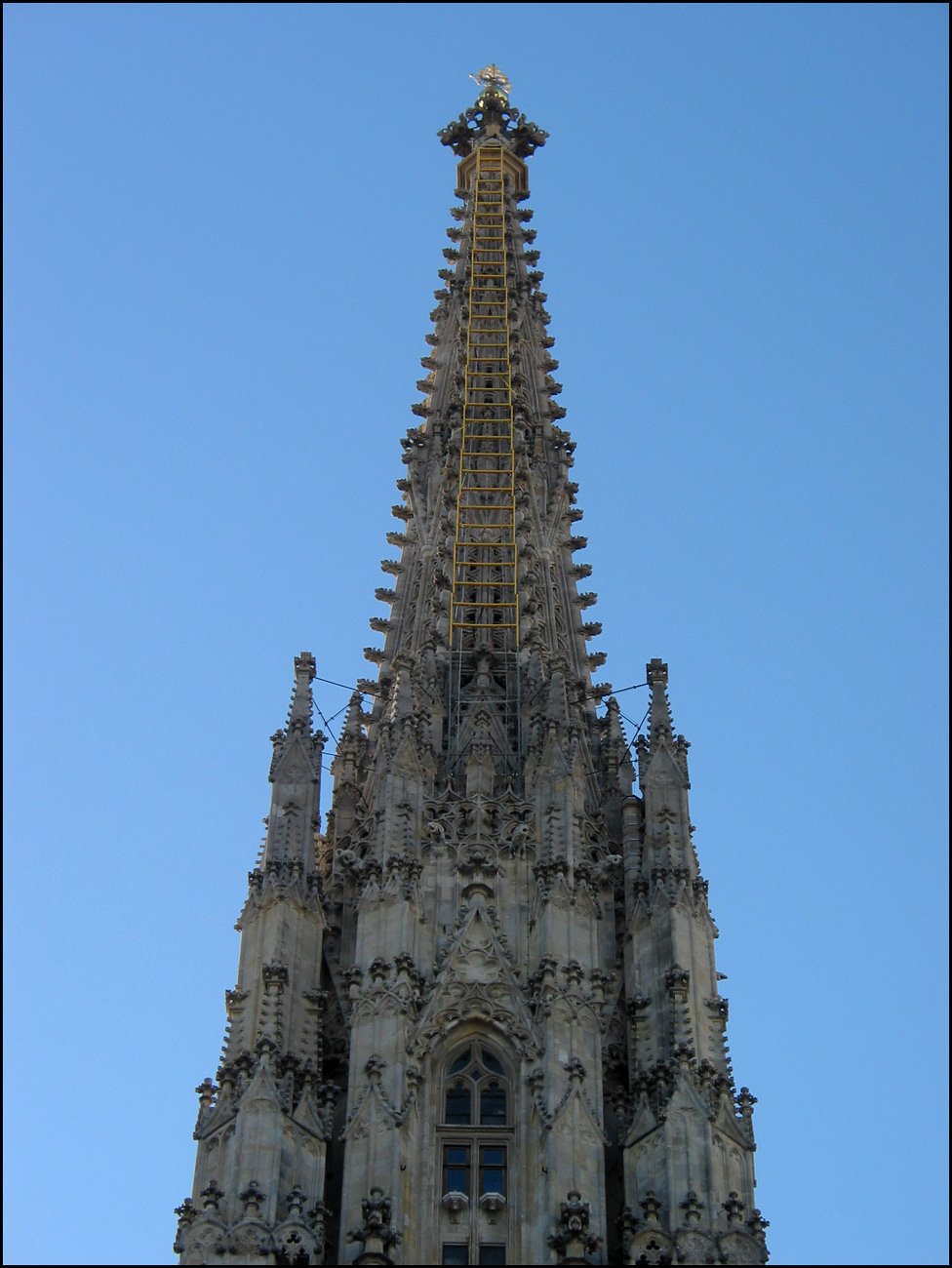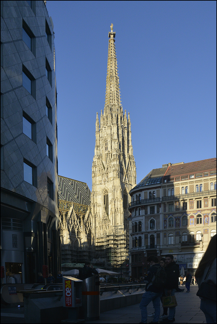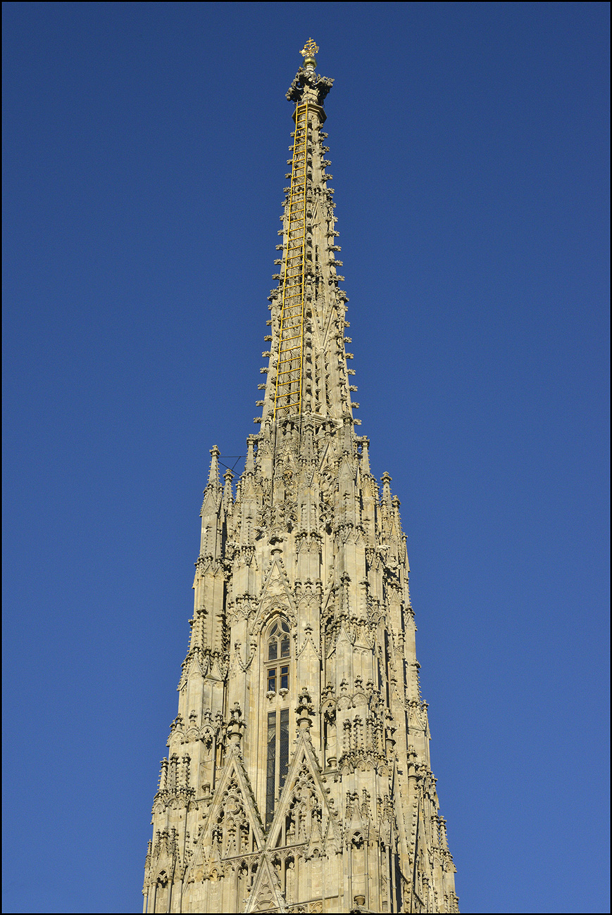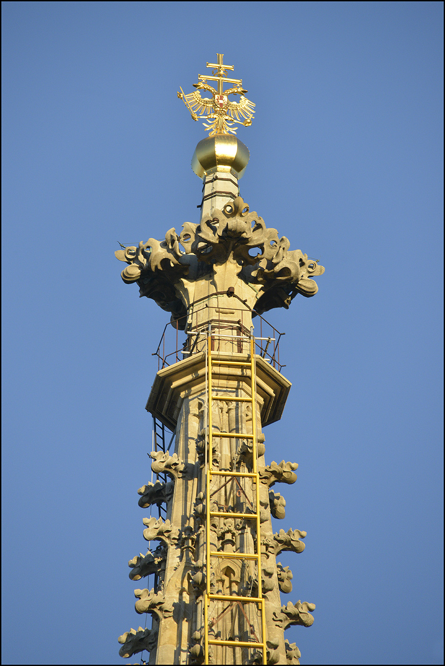 Die goldene Himmelsleiter am Stephansturm und in der Taufkapelle am Dienstag den 18. Mai 2021